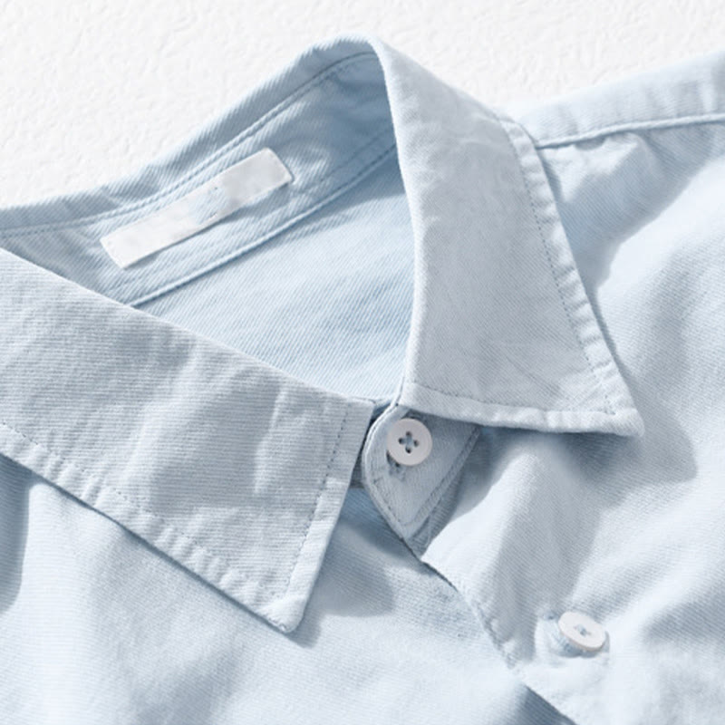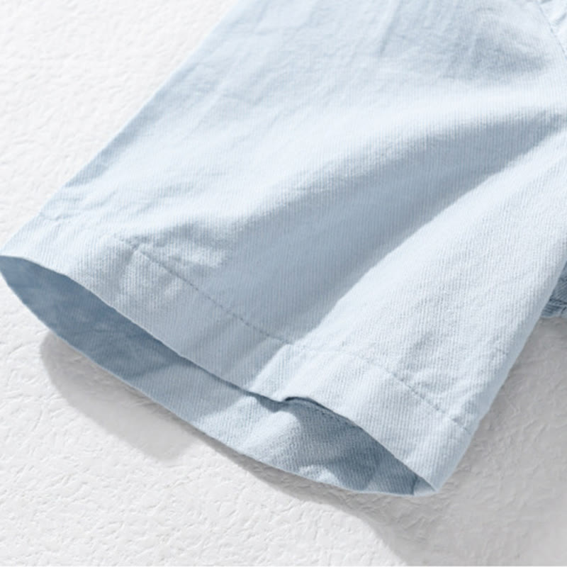Buddha Stones Daily Pure Color Lapel Men's Short Sleeve Cotton Linen Shirt With Pockets - LightBlue - US/UK/AU42,EU52 (3XL) - image 2