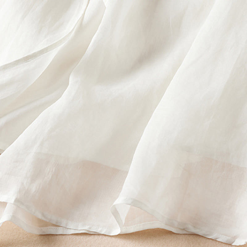 Buddha Stones Embroidered Leaf Crew Neck Half Sleeve Cotton Fiber Midi Dress - Snow - US8-10,UK/AU12-14,EU40-42 (2XL) - image 7