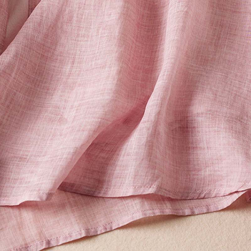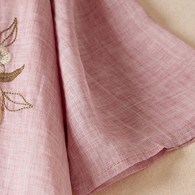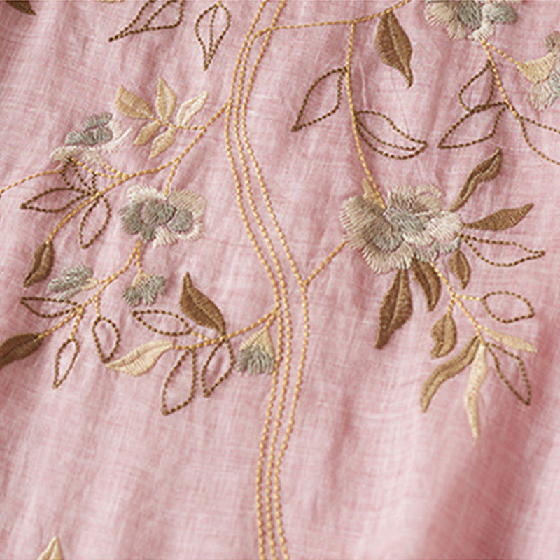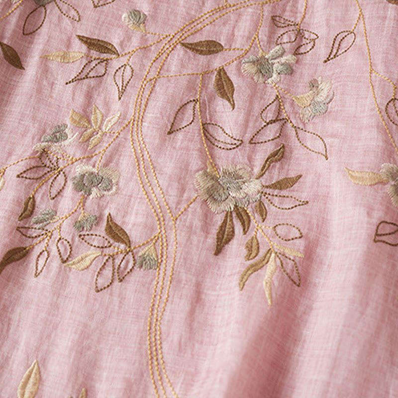 Buddha Stones Embroidered Leaf Crew Neck Half Sleeve Cotton Fiber Midi Dress - Pink - US8-10,UK/AU12-14,EU40-42 (2XL) - image 14