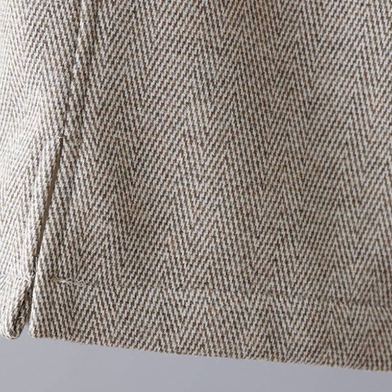Buddha Stones Plain Color Blocking Cotton Thick Casual Women's Pants With Pockets