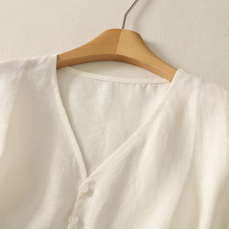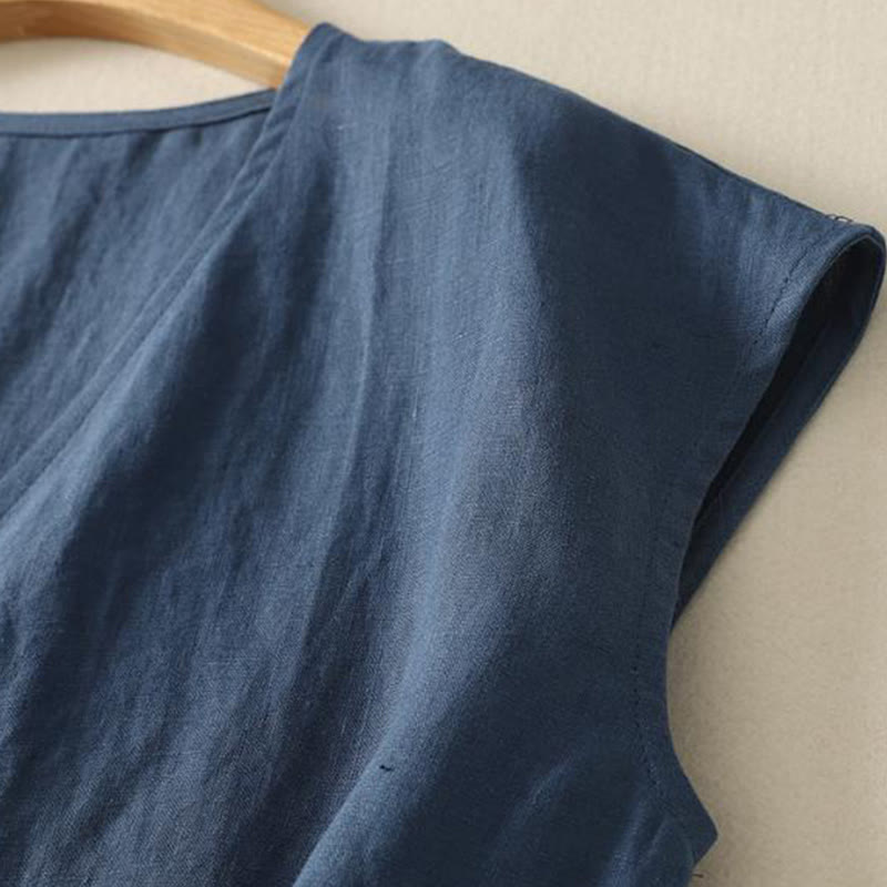 Buddha Stones Retro V-Neck Button Design Women's Cotton Sleeveless Vest - Linen - US8-10,UK/AU12-14,EU40-42 (2XL) - image 6