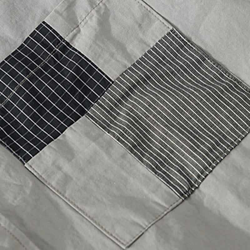 Buddha Stones Spring Daily Line Patchwork Design Lapel Men's Long Sleeve Cotton Linen Shirt With Pockets
