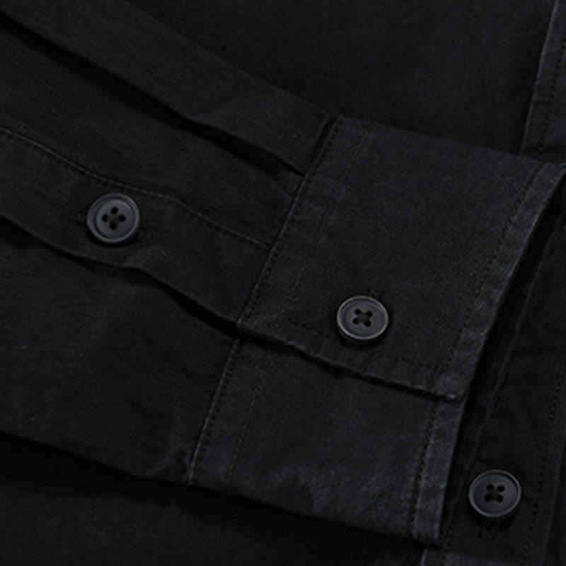 Buddha Stones Spring Daily Line Patchwork Design Lapel Men's Long Sleeve Cotton Linen Shirt With Pockets - Black - US/UK/AU42,EU52 (3XL) - image 15