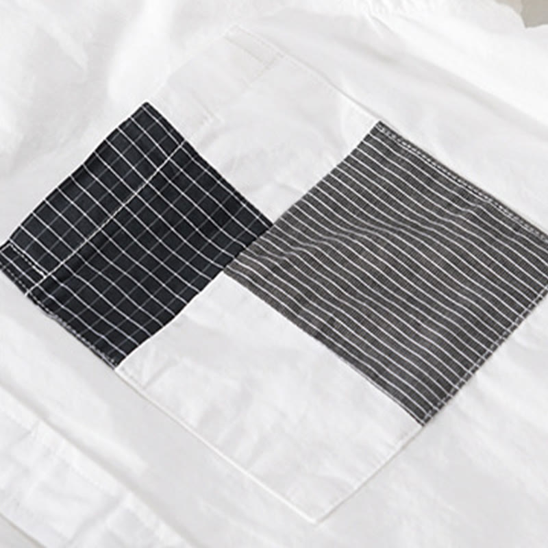 Buddha Stones Spring Daily Line Patchwork Design Lapel Men's Long Sleeve Cotton Linen Shirt With Pockets - White - US/UK/AU42,EU52 (3XL) - image 7