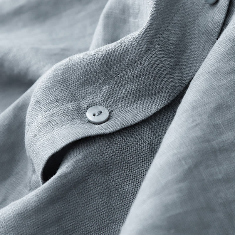 Buddha Stones Summer 2pcs Plain Long Sleeve Shirt Top Cardigan Shorts Meditation Clothing Women's Set With Pockets - image 33