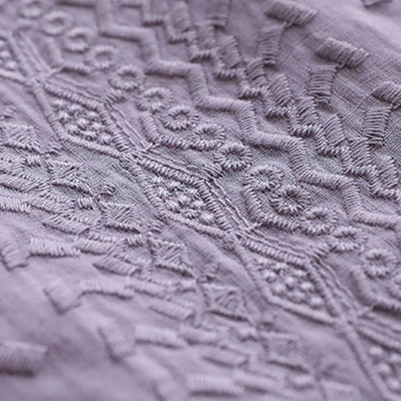 Buddha Stones Summer Casual Embroidered Pattern Women's V-Neck Design Half Sleeve Cotton Linen T-shirt - Plum - US8-10,UK/AU12-14,EU40-42 (2XL) - image 0