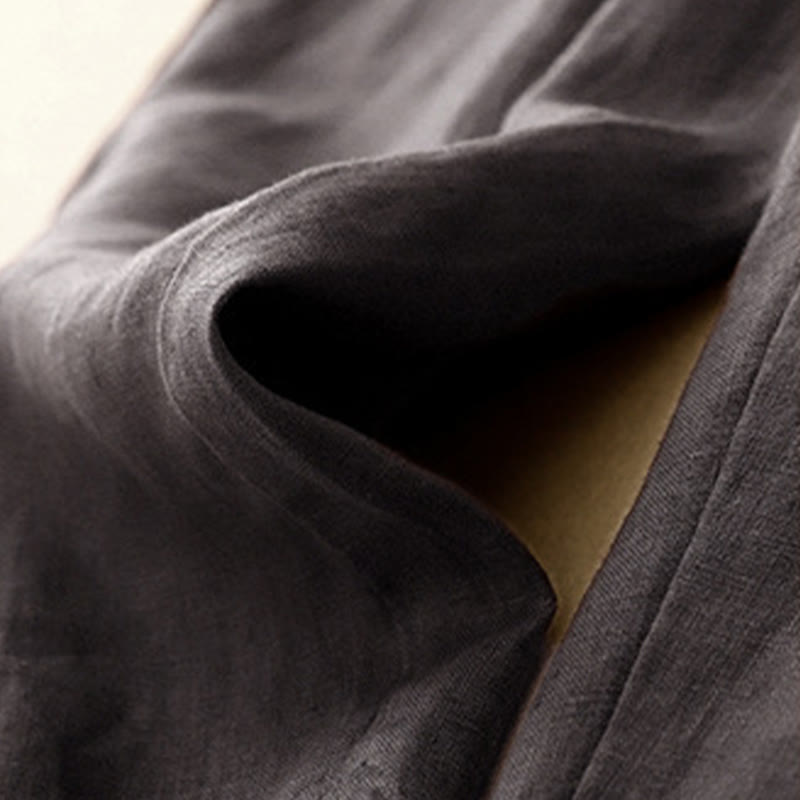 Buddha Stones Summer Plain Casual 7-8 Length Buttons Women's Cotton Linen Harem Pants With Pockets