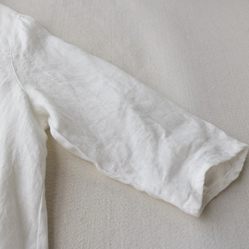 Buddha Stones Buttons Design Lapel Three Quarter Sleeve Midi Dress With Pockets - White - US8-10,UK/AU12-14,EU40-42 (2XL) - image 5