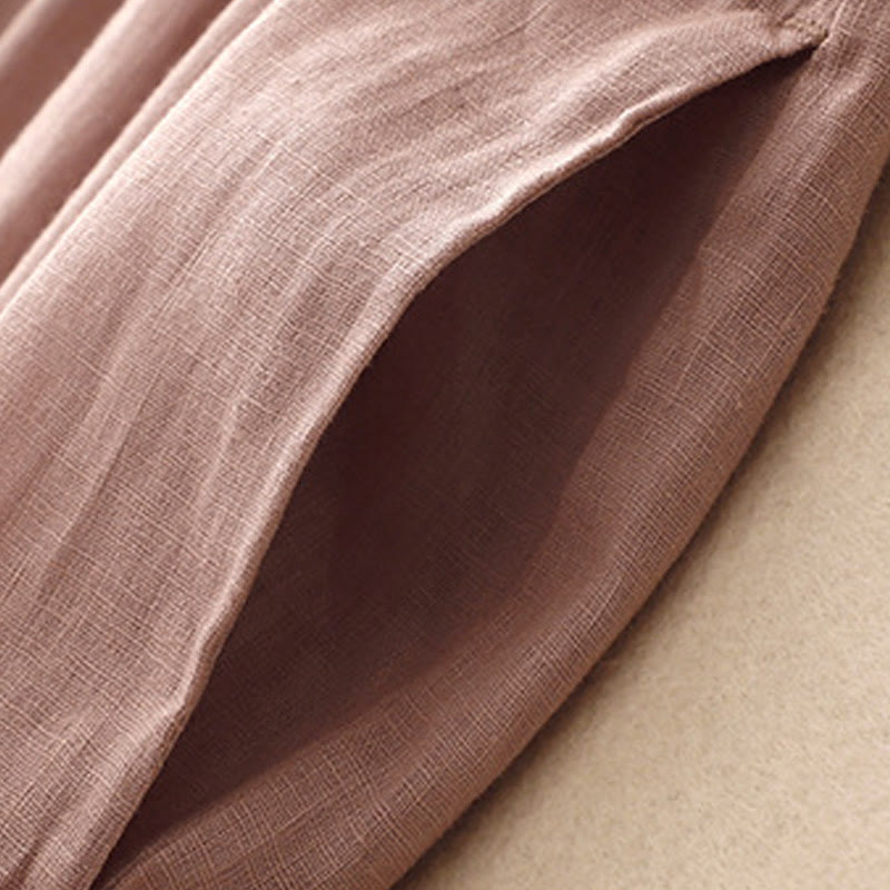 Buddha Stones Casual Artistic Solid Color Simple Design High Waist Short Sleeve Cotton Linen Midi Dress With Pockets - Pink - US8-10,UK/AU12-14,EU40-42 (2XL) - image 15