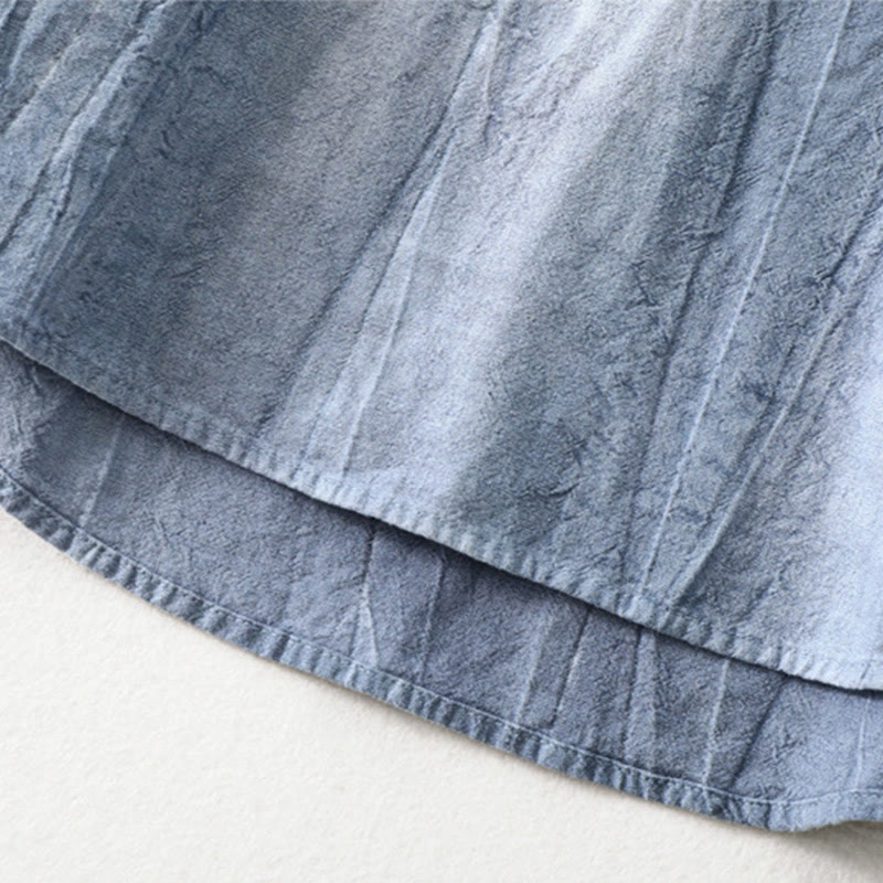 Buddha Stones Plain Pleats Half Buttons Design Stand Collar Men's Long Sleeve Cotton Linen Shirt - CornflowerBlue - US/UK/AU44,EU54 (4XL) - image 10