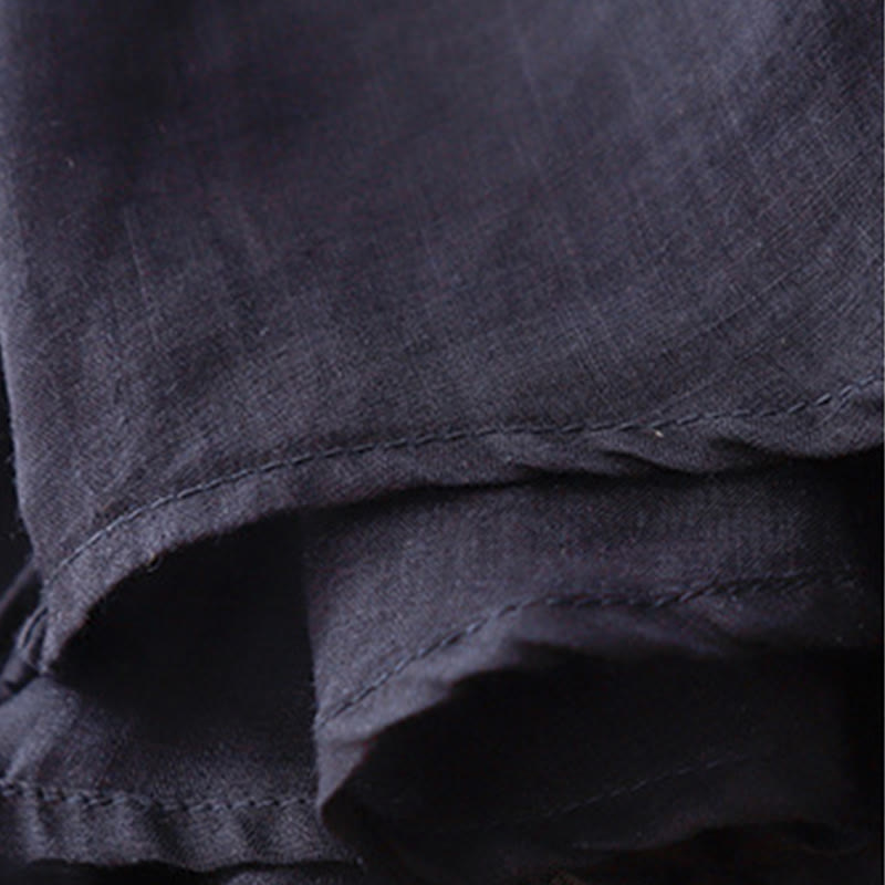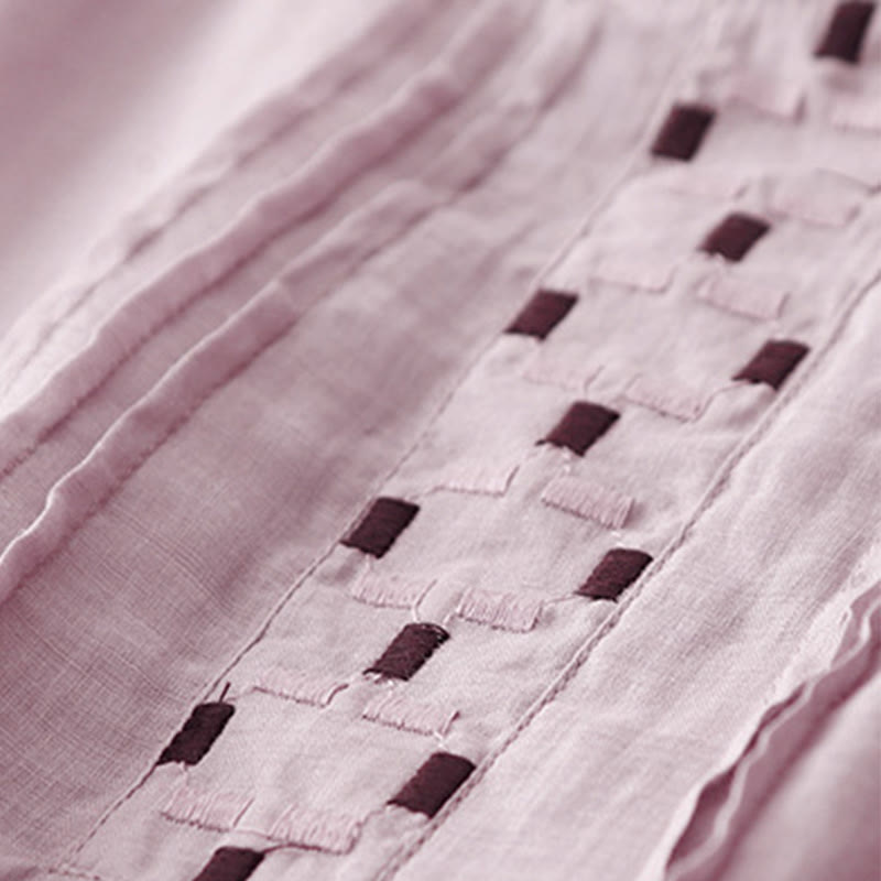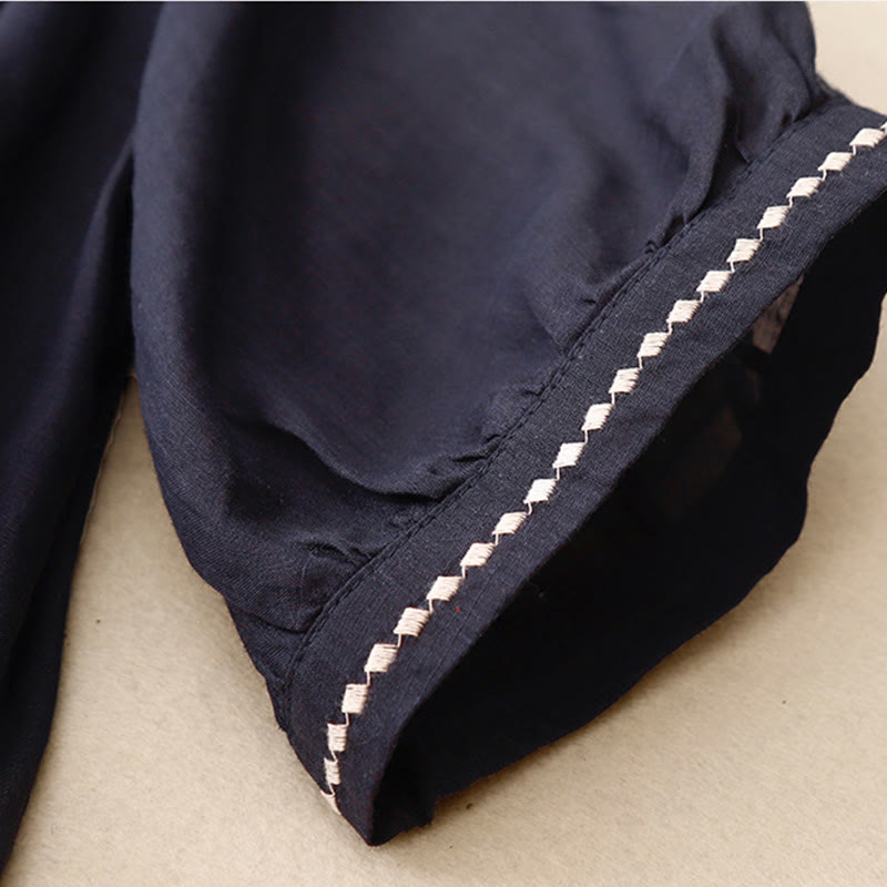 Buddha Stones Embroidery Crew Neck Pleats Women's Cotton Linen Half Sleeve T-shirt