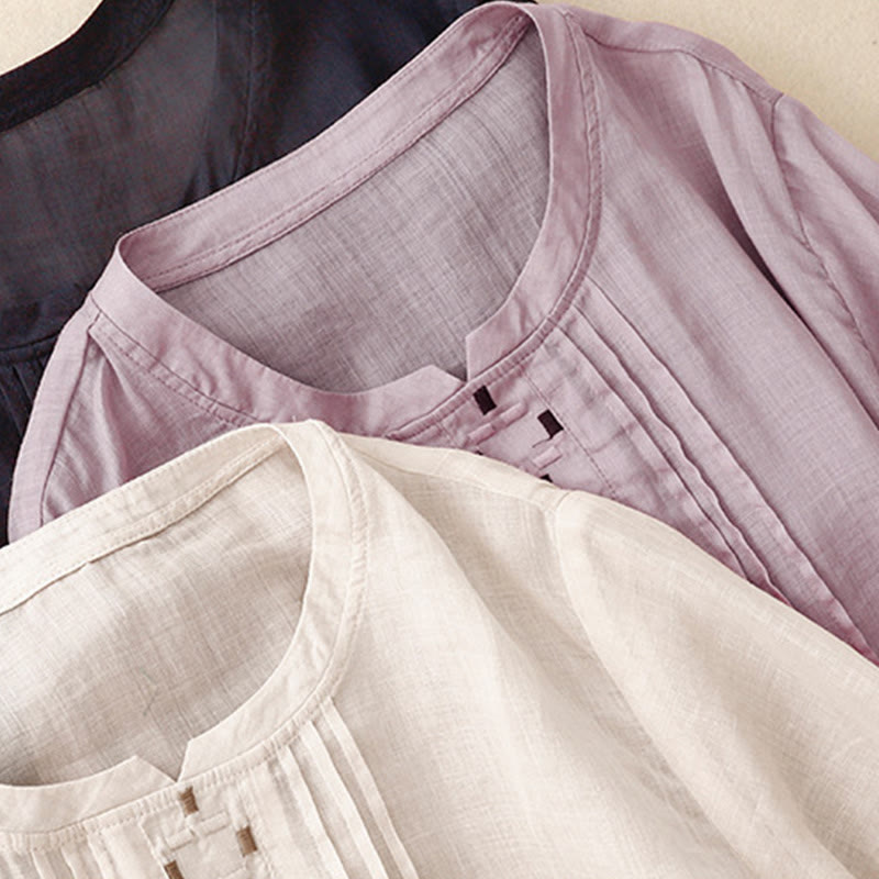 Buddha Stones Embroidery Crew Neck Pleats Women's Cotton Linen Half Sleeve T-shirt - image 25
