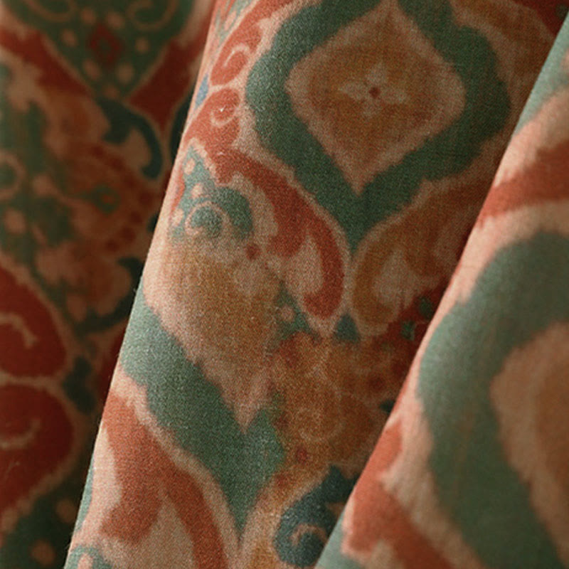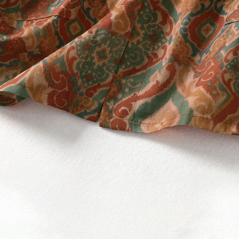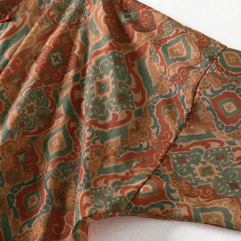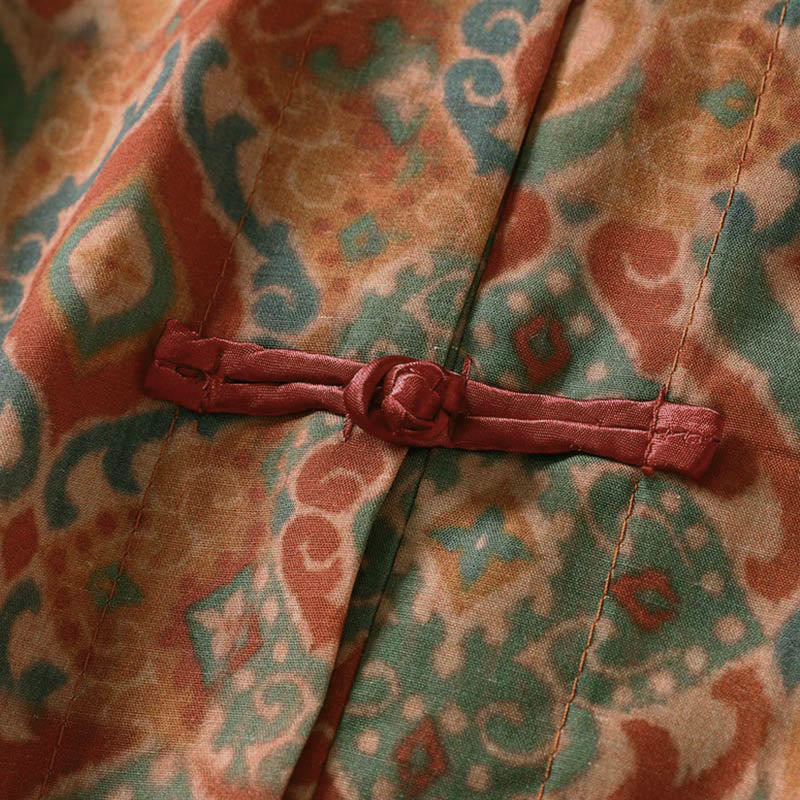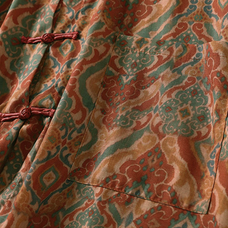 Buddha Stones Printing Chinese Frog-Button Long Sleeve Stand Collar Women's Shirt With Pockets - Peru - US12,UK/AU16,EU44 (XL) - image 0