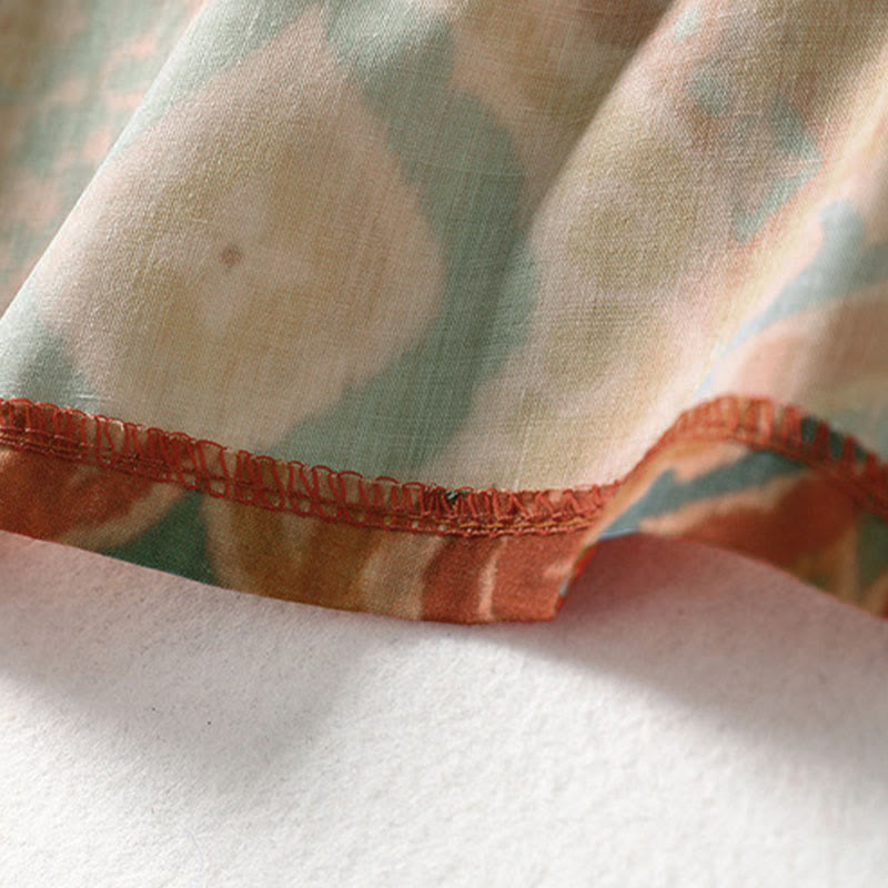 Buddha Stones Printing Chinese Frog-Button Long Sleeve Stand Collar Women's Shirt With Pockets - image 11