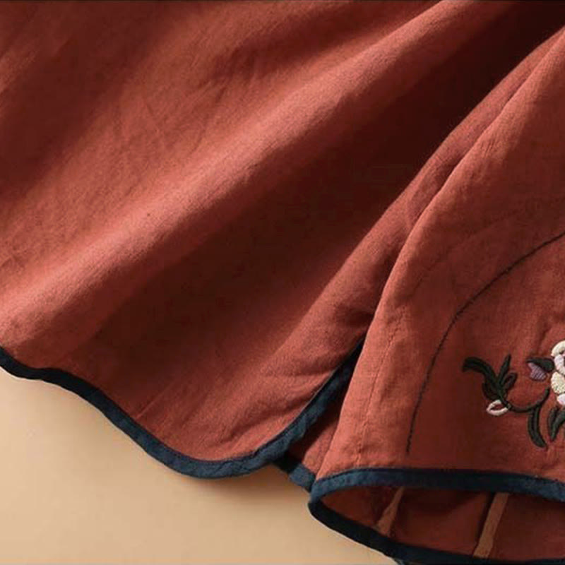 Buddha Stones Retro Flower Embroidery Design Long Sleeve Cotton Linen Women's Shirt - Red - US14,UK/AU18,EU46 (4XL) - image 0