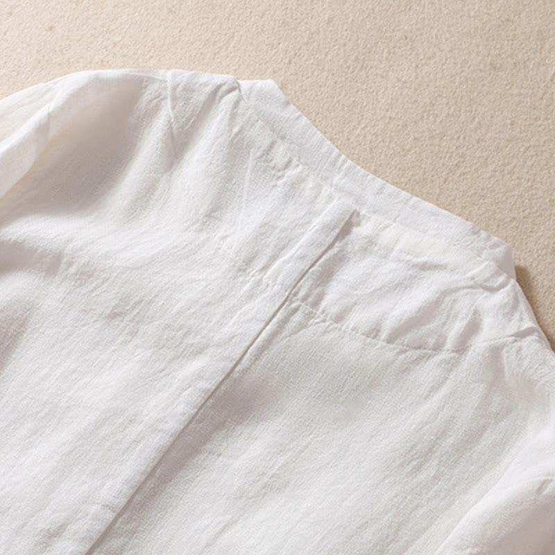 Buddha Stones Women's Cotton Linen Stand Collar Long Sleeve Shirt With Pockets - White - US8-10,UK/AU12-14,EU40-42 (2XL) - image 13
