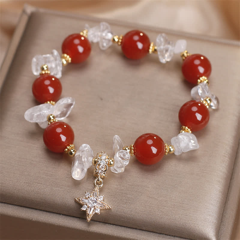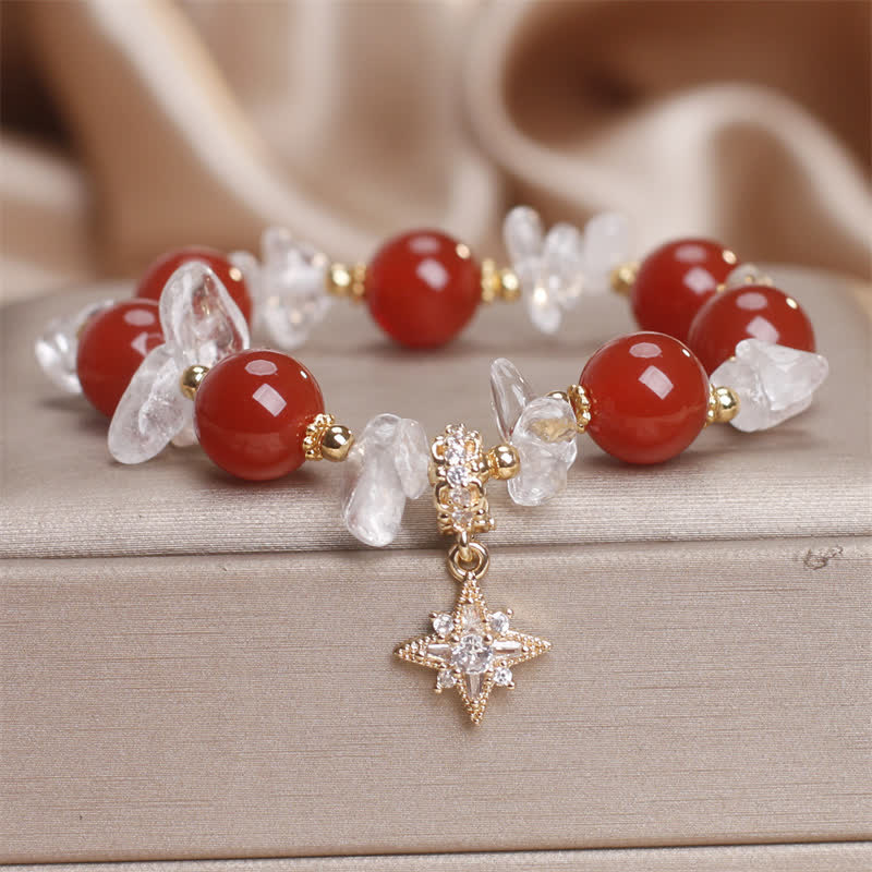 Buddha Stones Natural Red Agate Clear Quartz Hexagram Charm Confidence Bracelet - Red Agate(Wrist Circumference 15-16cm) - image 0