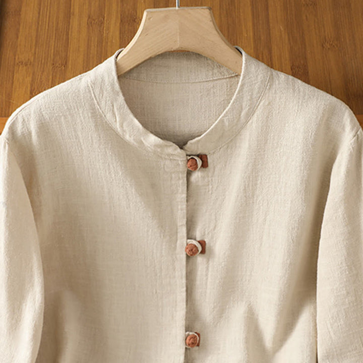 Buddha Stones Color Contrast Design Chinese Frog-Button Long Sleeve Women's Linen Shirt - image 17