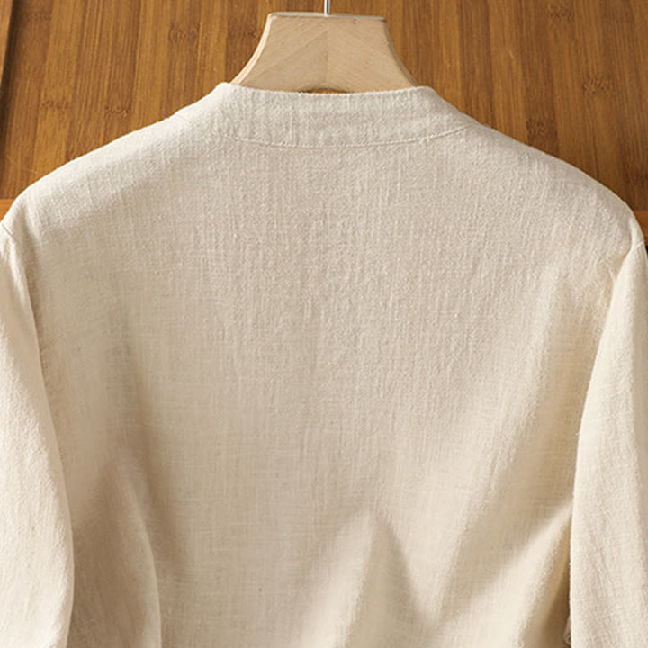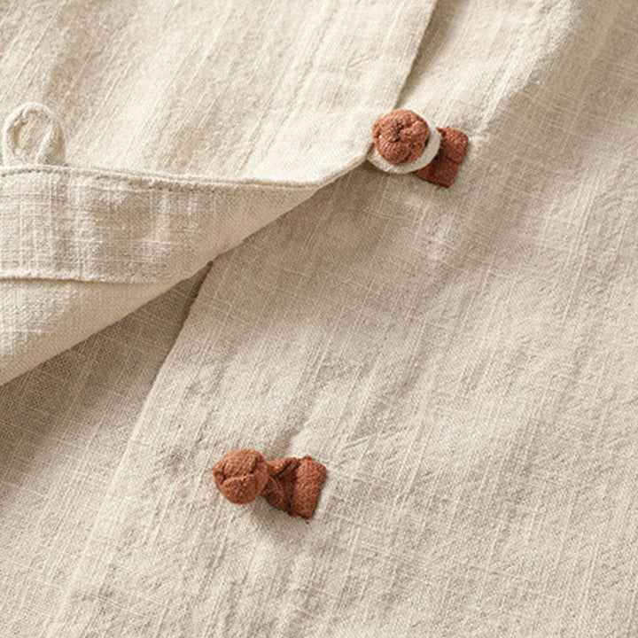 Buddha Stones Color Contrast Design Chinese Frog-Button Long Sleeve Women's Linen Shirt - Linen - US12,UK/AU16,EU44 (2XL) - image 7