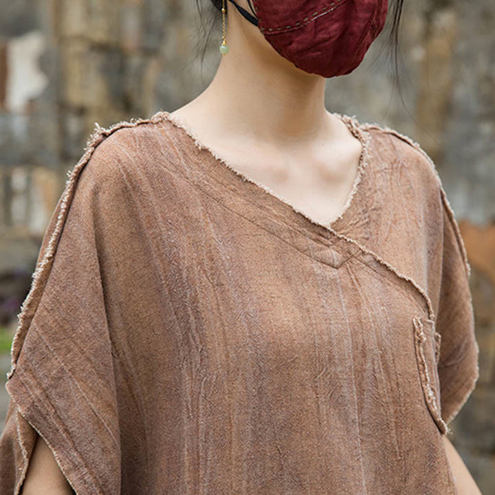 Buddha Stones Summer Tie-dye Linen V-Neck Short Sleeve Women's T-shirts