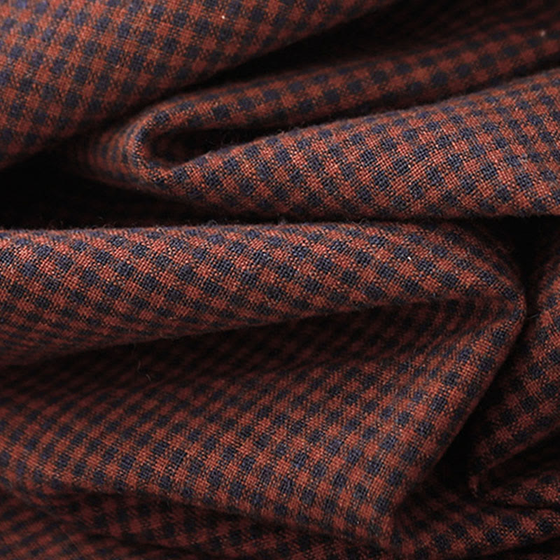Buddha Stones Fall Brown Plaid Stand Collar Frog-Button Design Long Sleeve Midi Dress With Pockets