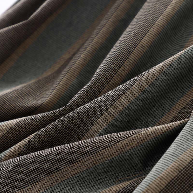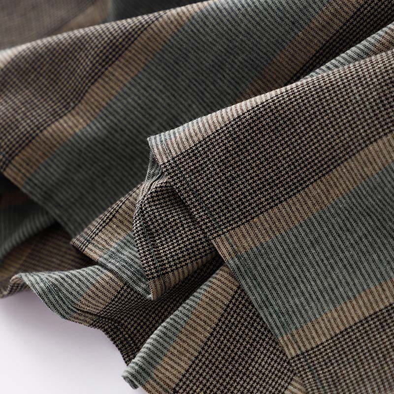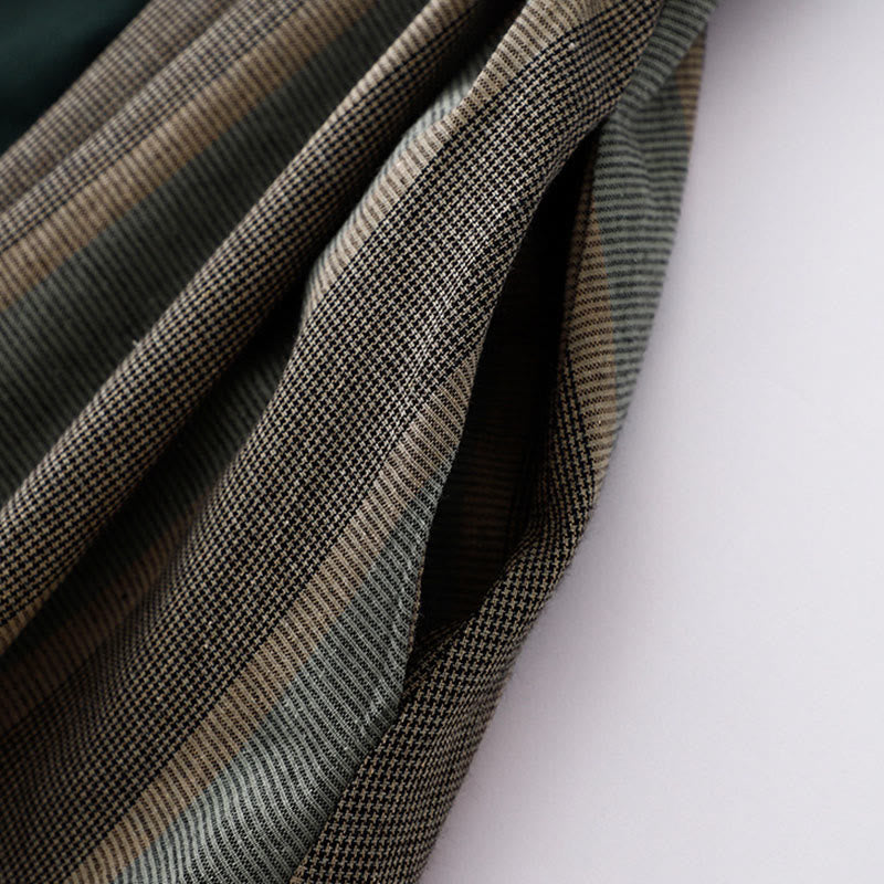 Buddha Stones Lapel Color Blocking Design Long Sleeve Cotton Midi Dress With Pockets
