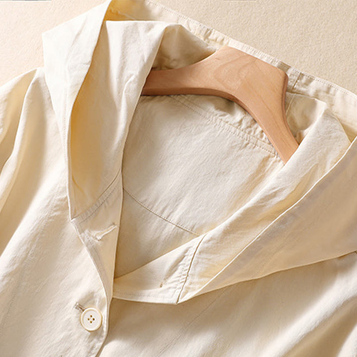Buddha Stones Pure Color Hooded Women's Long Sleeve Cotton Jacket With Pockets - OldLace - US14,UK/AU18,EU46 (2XL) - image 7