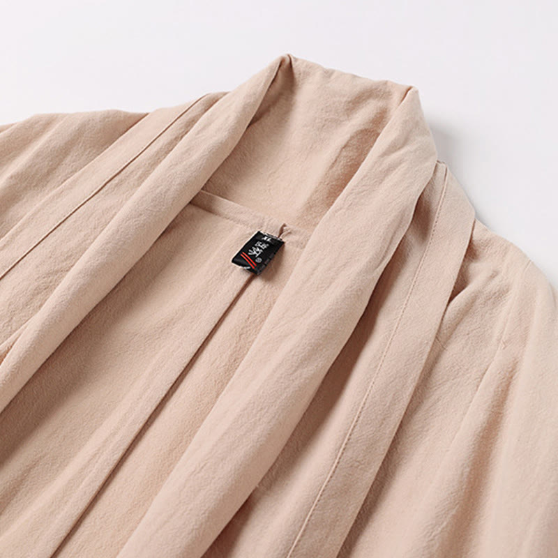 Buddha Stones Spring Fall Solid Color Long Sleeve Mid-length Open Front Men's Kimono