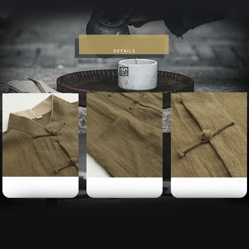 Buddha Stones Tang Frog-Button Long Sleeve Shirt Cotton Linen Men's Clothing - image 20