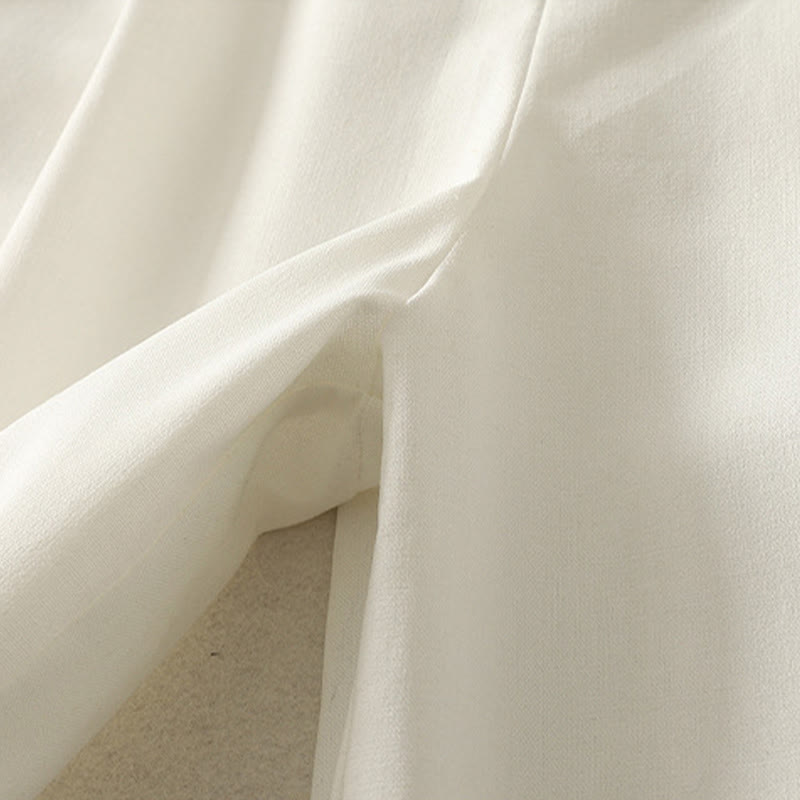 Buddha Stones Women's Embroidery Elastic Waistband Zipper Design Cotton Wide Leg Pants With Pockets - White - US8-10,UK/AU12-14,EU40-42 (2XL) - image 1