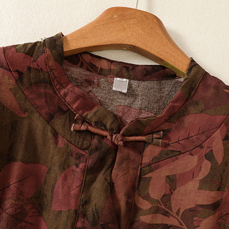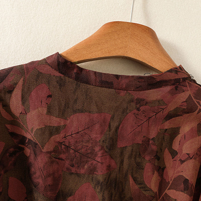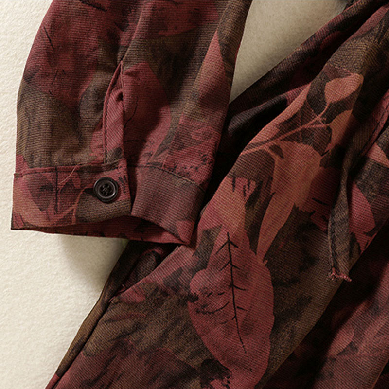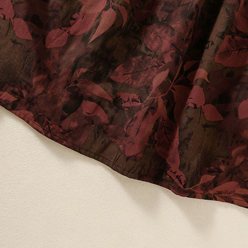 Buddha Stones Casual Flower Printed Pattern Buttons Design Long Sleeve Midi Dress With Pockets - IndianRed - US12,UK/AU16,EU44 (2XL) - image 7
