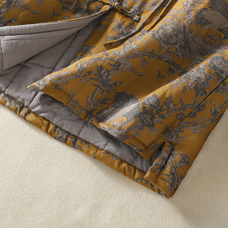 Buddha Stones Crane Flowers Branches Frog-Button Pattern Cotton Women's Sleeveless Vest Waistcoat - Goldenrod - US8-10,UK/AU12-14,EU40-42 (2XL) - image 0