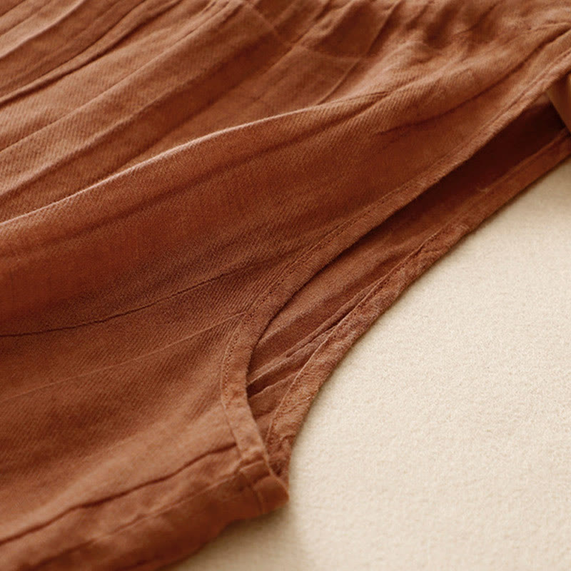 Buddha Stones Summer Pure Color Wrinkle Lace-up Sleeveless Vest Women's Waistcoat - Chocolate - US8-10,UK/AU12-14,EU40-42 (2XL) - image 18