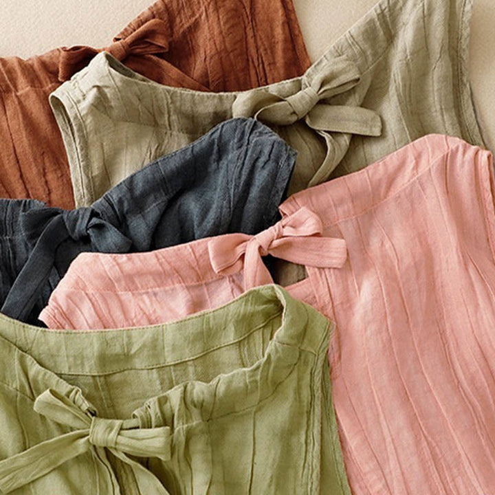 Buddha Stones Summer Pure Color Wrinkle Lace-up Sleeveless Vest Women's Waistcoat