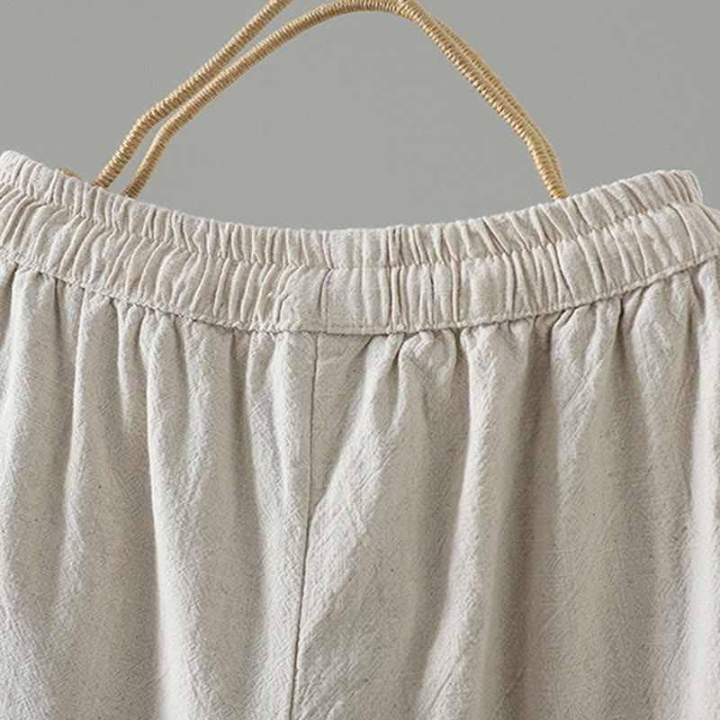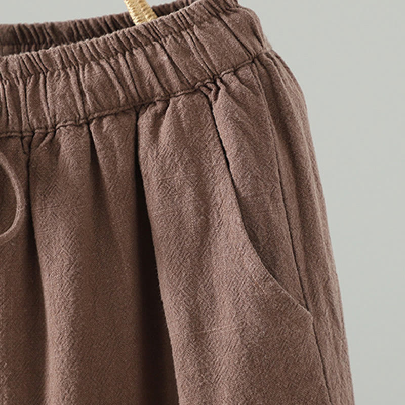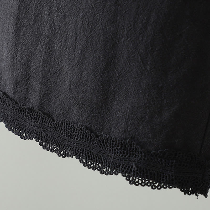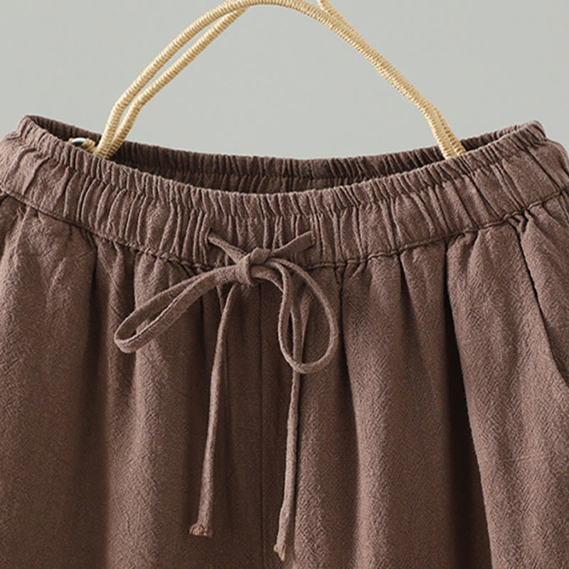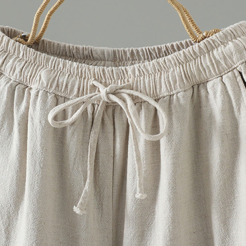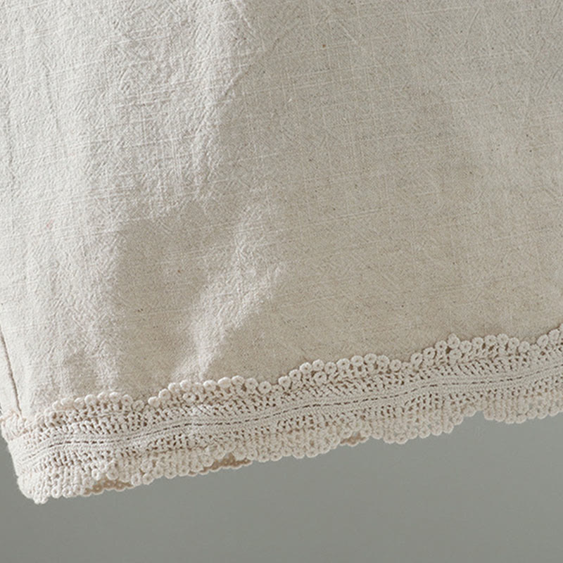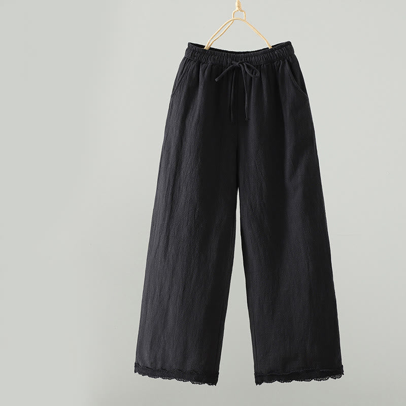 Buddha Stones Women's Pure Color Lace Patchwork Drawstring Thermal Cotton Pants With Pockets