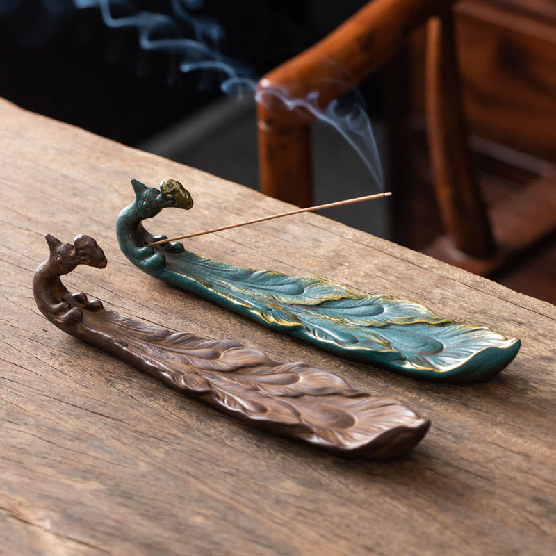 Buddha Stones Peacock Shape Fortune Home Decoration Incense Burner - SaddleBrown Peacock(24.7*6.5*5.5 cm) - image 7