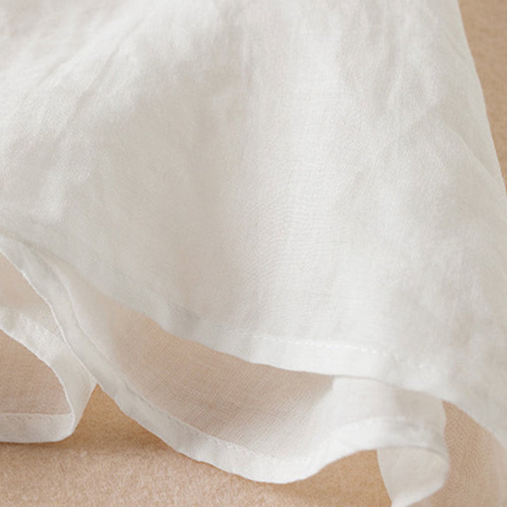 Buddha Stones Casual Embroidery Plants Women's V-Neck Design Half Sleeve Cotton Blended Shirt