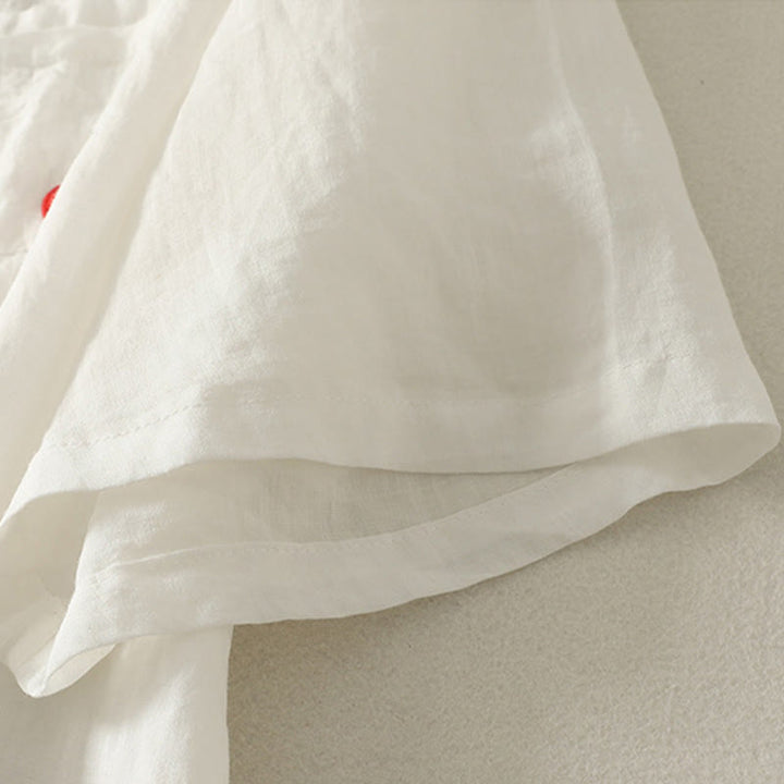 Buddha Stones Casual Embroidery Red Heart Short Sleeve Women's Cotton Linen T-Shirt - White - US14,UK/AU18,EU46 (2XL) - image 4