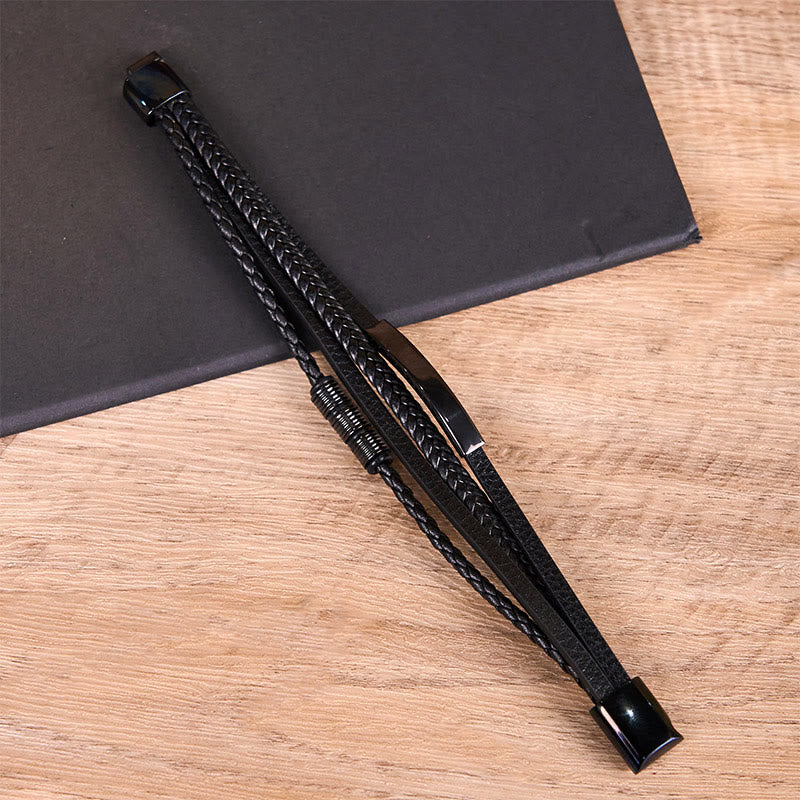 Buddha Stones Fashion Titanium Steel Leather Hand Woven Magnetic Buckle Strengthen Bracelet