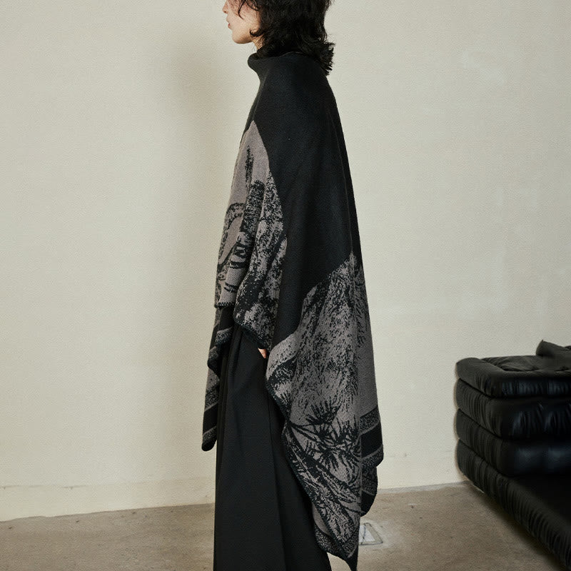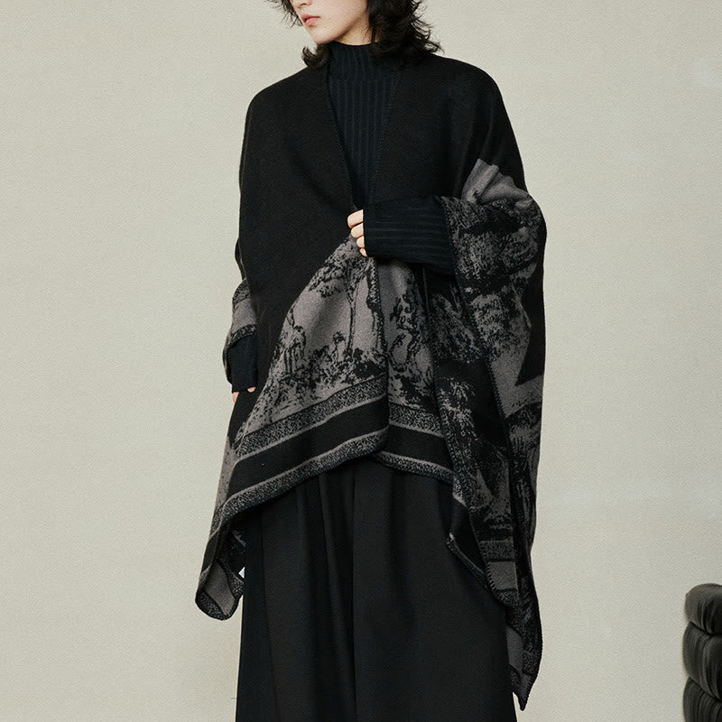 Buddha Stones Black Gray Sika Deer Animal Forest Double-sided Shawl Fall Winter Warm Scarf Wrap