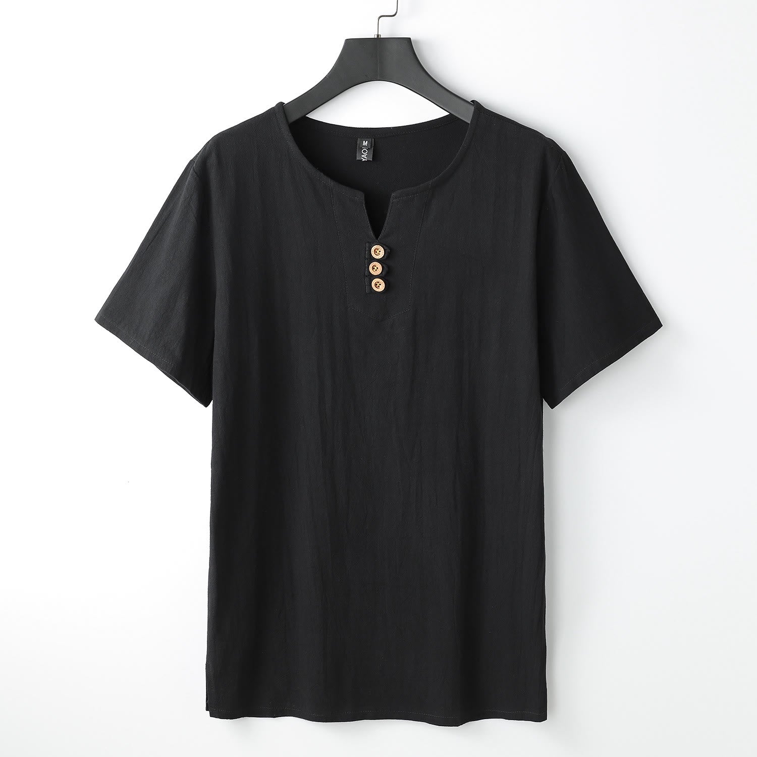 Buddha Stones Men's T-Shirt Solid Color Top Short Sleeve Three-button V Collar Soft Cotton Shirt