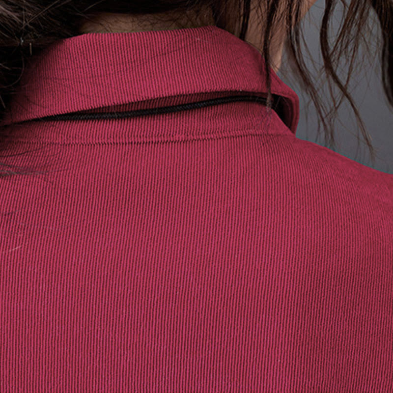 Buddha Stones Fall Buttons Design Long Sleeve Cotton Corduroy Midi Dress With Pockets - Red - US8-10,UK/AU12-14,EU40-42 (2XL) - image 9
