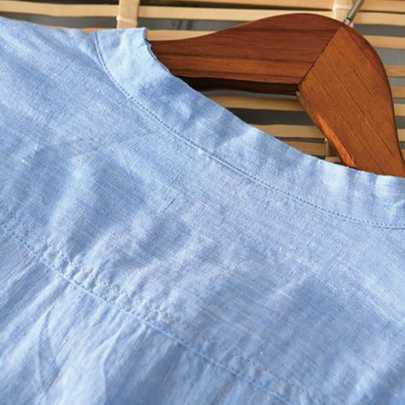 Buddha Stones Daily Solid Color Stand Collar Half Sleeve Linen Half Button Men's Shirt - CornflowerBlue - US/UK/AU42,EU52 (3XL) - image 11