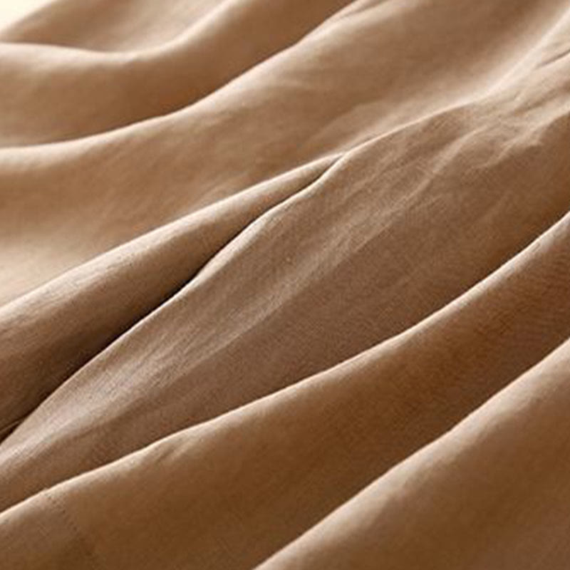 Buddha Stones Plain Color Pleated Zipper Button Cotton Linen Women's Shorts With Pockets