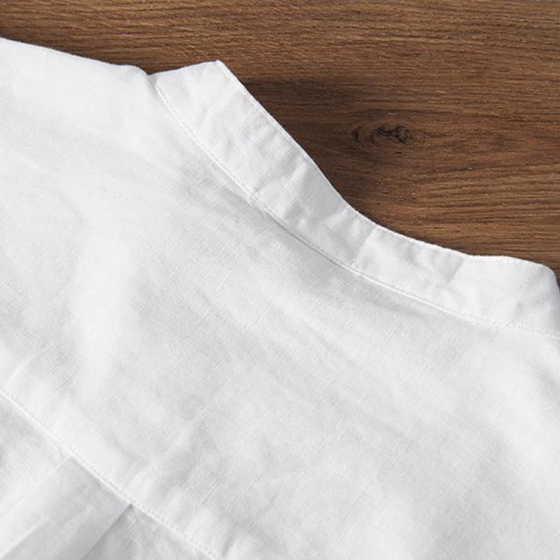 Buddha Stones Soft Embroidery Crane Pattern Stand Collar Cotton Linen Half Button Men's Shirt - White - US/UK/AU42,EU52 (3XL) - image 1