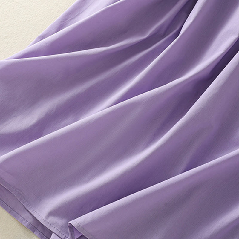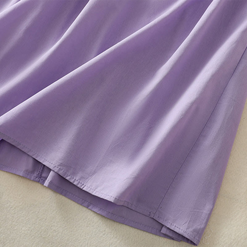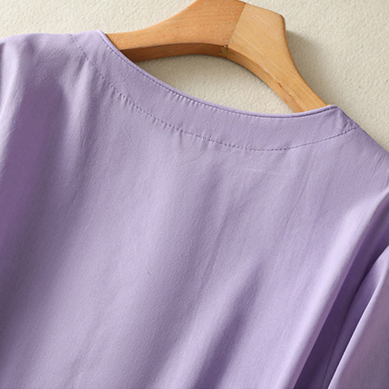Buddha Stones Summer Orchid Embroidery Lace-Up V-Neck Half Sleeve Cotton Linen Midi Dress With Pockets - Orchid - US8-10,UK/AU12-14,EU40-42 (2XL) - image 0