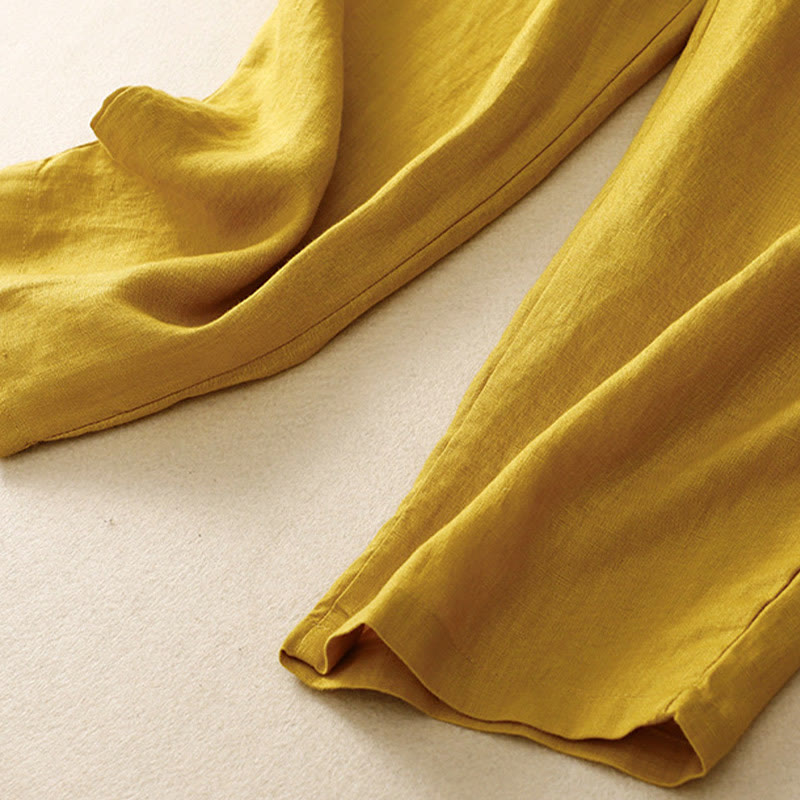 Buddha Stones Vintage High Waist Lace-up Cotton Linen Harem Pants With Pockets - Yellow - US8-10,UK/AU12-14,EU40-42 (2XL) - image 13
