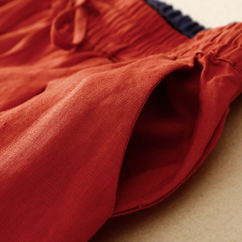 Buddha Stones Vintage High Waist Lace-up Cotton Linen Harem Pants With Pockets - Tomato - US8-10,UK/AU12-14,EU40-42 (2XL) - image 7