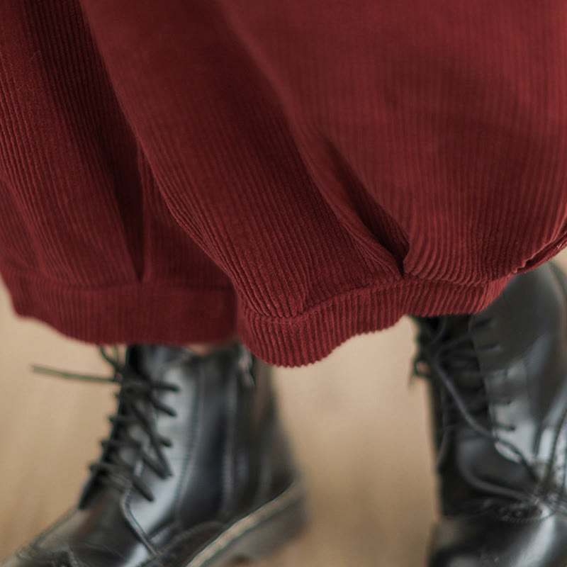 Buddha Stones Plain Elastic Waistband Design Women's Corduroy Harem Pants With Pockets