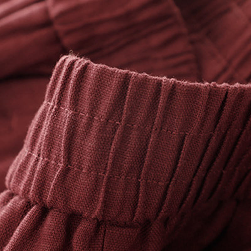 Buddha Stones Summer Plain Women's Cotton Linen Harem Pants With Pockets - Maroon - US8-10,UK/AU12-14,EU40-42 (2XL) - image 5